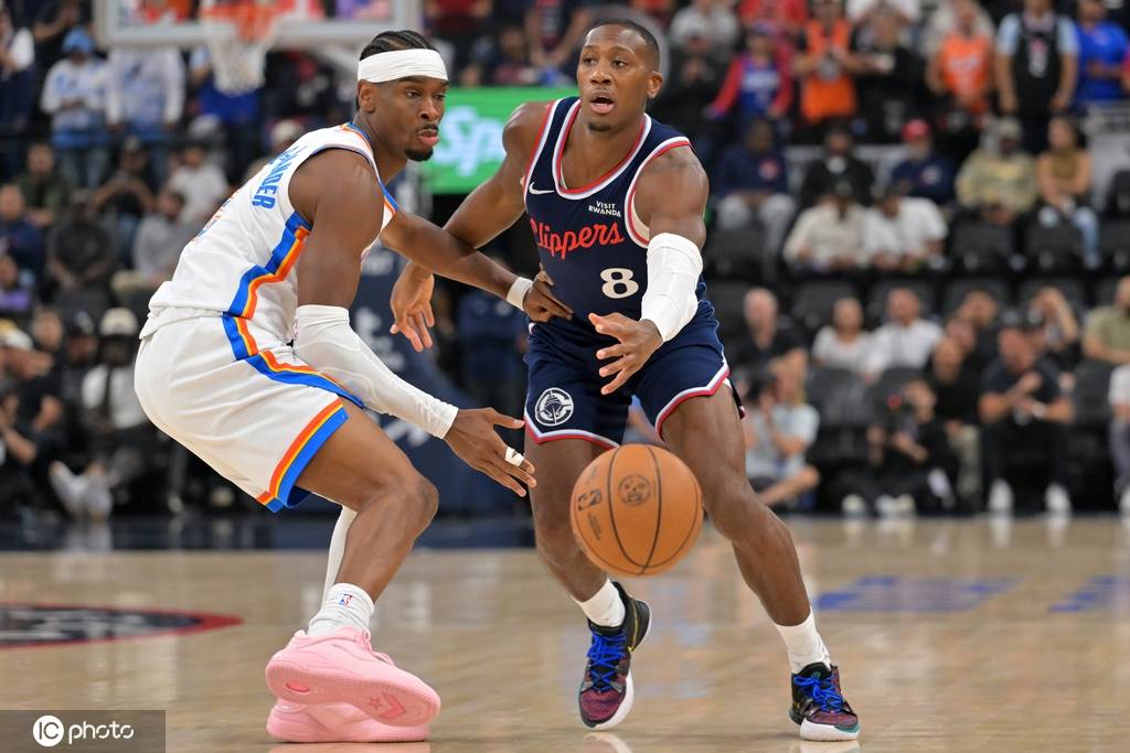 快船队首发:科怀-伦纳德、布鲁克-洛佩斯、约翰-科林斯、小德里克-琼斯、克里斯-邓恩