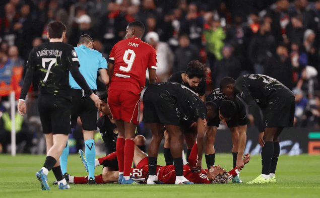 北京时间2026年4月15日凌晨,欧冠1/4决赛次回合的安菲尔德之夜,对于利物浦球迷而言,注定是一个充满了苦涩与绝望的夜晚。在球队以总比分0-4惨遭巴黎圣日耳曼双杀出局的比分牌背后,隐藏着一个比输球更令人心碎的瞬间——年仅24岁的法国前锋埃基蒂克,在无对抗的情况下轰然倒地,双手捂脸,仿佛听到了职业生涯最残酷的宣判。
